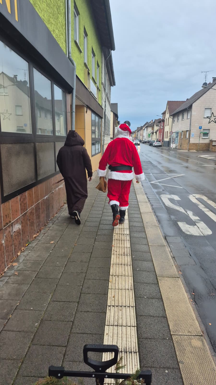 Am Nikolaustag war in Eppertshausen ein besonderer Gast unterwegs: Der Nikolaus zog gemeinsam mit seinem Begleiter Knecht Ruprecht durch den Ort und verteilte rund 300 Schokonikoläuse. Viele Familien nutzten die Gelegenheit für eine kurze Begegnung – zur Freude der Kinder, aber auch überraschenderweise der Erwachsenen.