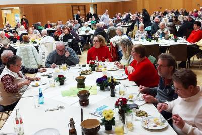 Die Bürgerhalle war gut gefüllt: Mehr als 200 Besucher kamen zum Heringsessen der CDU Eppertshausen, zusätzliche Plätze wurden auch im Vorraum benötigt. Im Vorstand wird deshalb darüber nachgedacht, bei künftigen Veranstaltungen die Anordnung der Tische anzupassen.